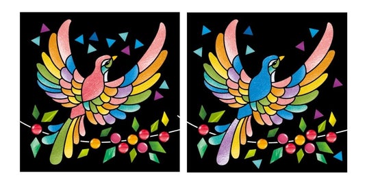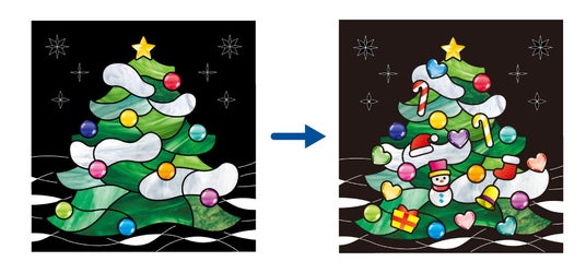 そんなシールパズル本から、これまでにない新シリーズが登場! 真っ黒な背景にカラフルなシールを貼って、ステンドグラス風のパズルを完成させます。
