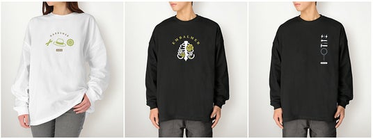 描き下ろしイラストのキャラとおそろいデザインのTシャツやパーカーが買える!!