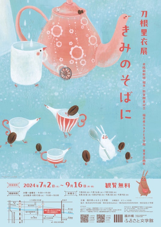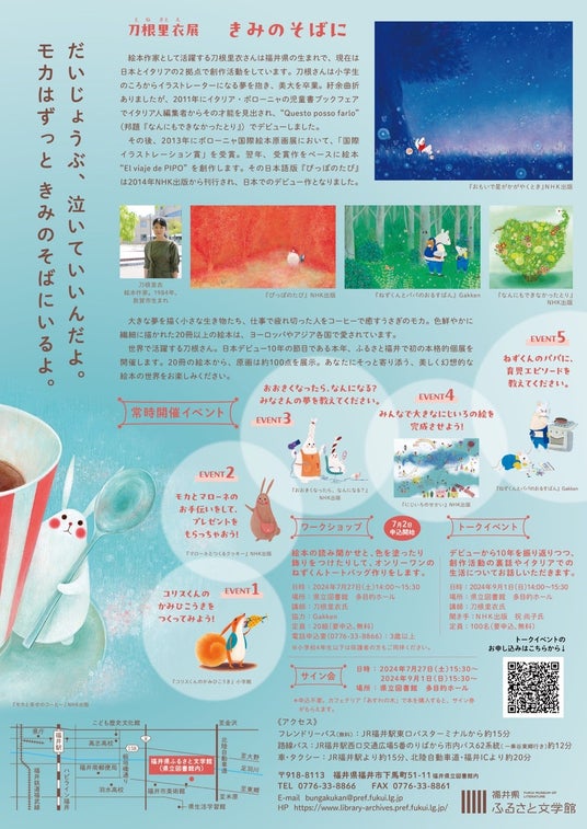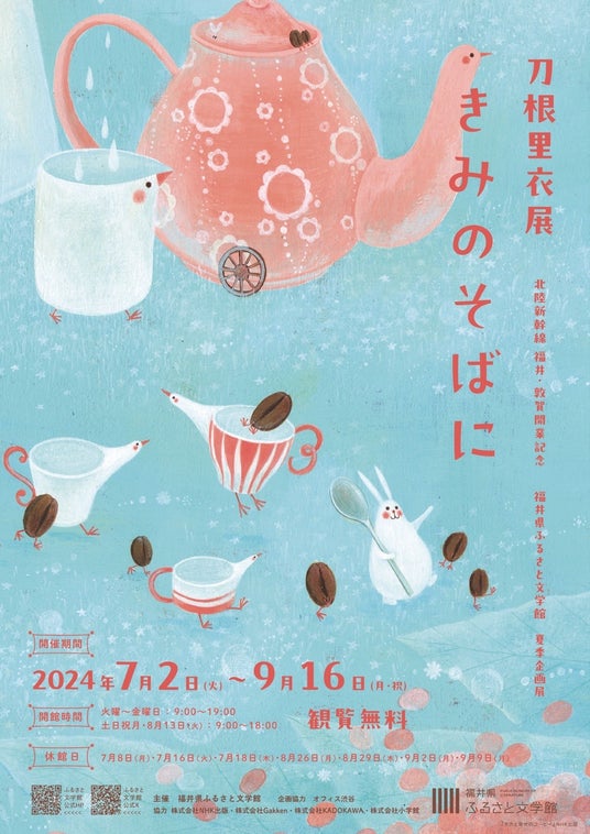 株式会社 学研ホールディングス(東京・品川/代表取締役社長:宮原博昭)のグループ会社、株式会社 Gakken(東京・品川/代表取締役社長:五郎丸徹)は、2024年7月2日(火)~9月16日(月・祝)に福井県ふるさと文学館にて開催される『刀根里衣展「きみのそばに」』に協力、7月27日にはワークショップとサイン会のイベントを開催いたします。