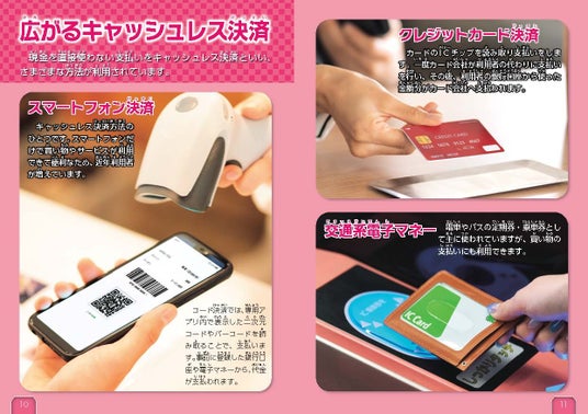 ▲近年広がりを見せるキャッシュレス決済についても取り上げて、しくみをやさしく解説します。