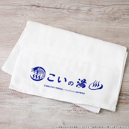 作中の舞台となる「こいの湯」のロゴデザインの『銭湯セット』が登場!風呂桶、フェイスタオル、ロッカーキー風アクリルキーホルダーの豪華3点セットです。実際に銭湯に持って行くも良し、お手持ちのグッズとあわせて飾るも良し。ぜひ、こいの湯に行ったような気分に浸かってくださいね!
