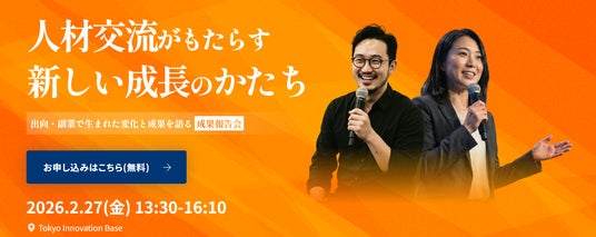 このたび出向・副業を実施した大企業人材が順次帰任いたしますので、人材交流の成果を広く発信する報告会を開催いたします。参加者同士での名刺交換会等の時間も用意しておりますので、本事業にご興味がある方は、ぜひご参加ください!
