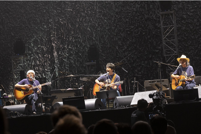 オープニングでフラッとステージに登場したCharは、刀を抜いてアリーナ、スタンドを見渡す。まずは、アコースティックユニット・三人の侍(奥田民生, 竹中尚人, 山崎まさよし)の出番のようだ。「どうも、前座です。今日は最後までゆっくり楽しんでください」と挨拶して場内を和ませると、アコースティックギターを軽快にストロークし出した。山崎まさよし、奥田民生それぞれとのエピソードを歌うと、ステージ袖から山崎、奥田の順で登場してアコギとコーラスで演奏に加わる。曲の終盤で「45周年in武道館 おめでとう」と3人のハーモニーを聴かせてから「侍の歌が聴こえてくるよ」と、「かえるの合唱」を替え歌にした輪唱まで披露した。イーグルス「Hotel California」の歌詞をもじった「Hotel Budokan」、ザ・ビートルズ「Nowhere Man」、ザ・スパイダース「エレクトリックおばあちゃん」と、歌、ギターのテクニックと共にユーモアを存分に発揮したカバーなど、サービス精神たっぷりに盛り上げた。