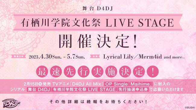 最速先行の実施も決定。2月15日発売のTVアニメ「D4DJ All Mix」OP Single「Maihime」に封入の先行抽選申込券でご応募いただけます。