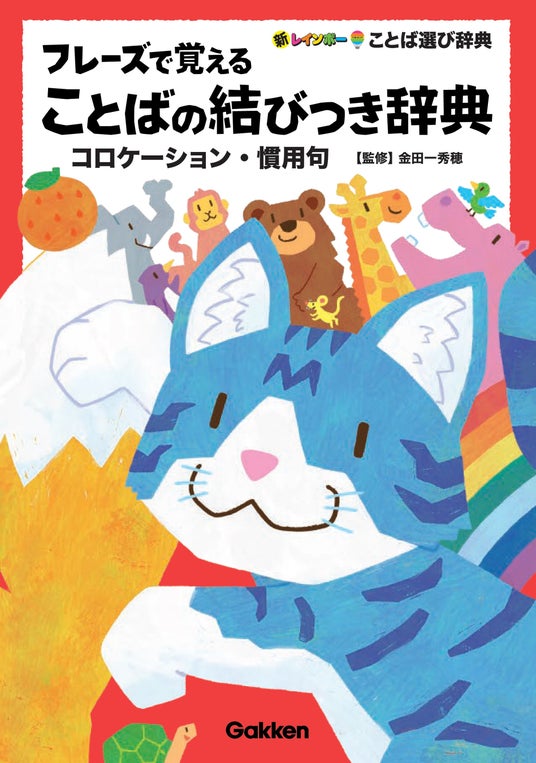 ▲『フレーズで覚えることばの結びつき辞典』表紙。赤色と猫が目印。