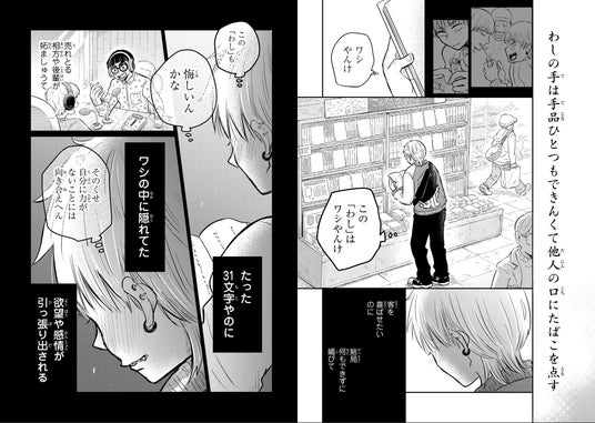 第1首『後輩の煙草を灯す手の内で 鳴けない蝉がジジっと焦げた』より