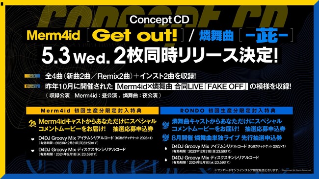 5月3日(水)に、Merm4idと燐舞曲のConcept CDの2枚同時リリースが決定しました。