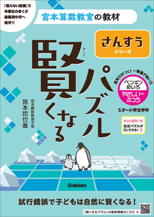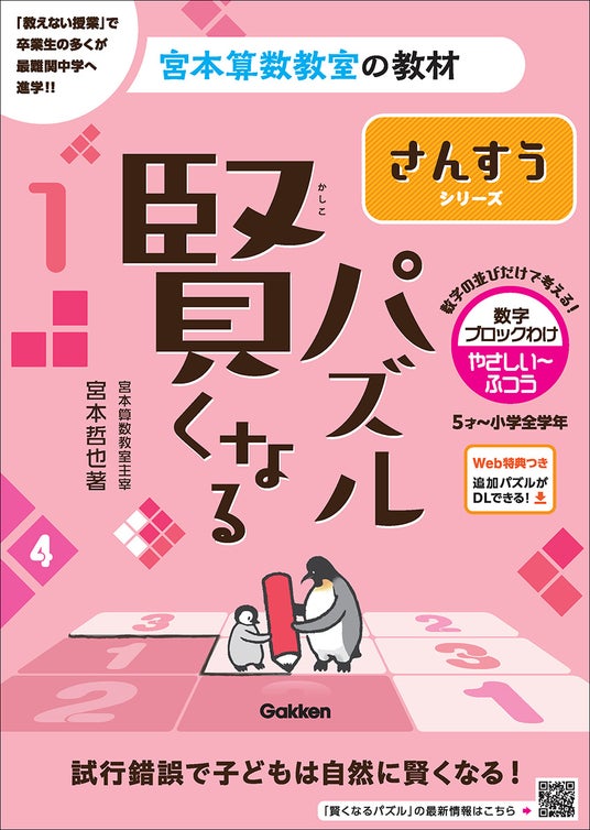 株式会社 学研ホールディングス(東京・品川/代表取締役社長:宮原博昭)のグループ会社、株式会社 Gakken(東京・品川/代表取締役社長:五郎丸徹)は、2024年6月28日(金)に、宮本算数教室の教材『賢くなるパズル』シリーズの「数字ブロックわけ」「ペンギンめいろ」「面積九九」「ビルディング」の計4冊を発売、シリーズ全22冊が完成いたしました。