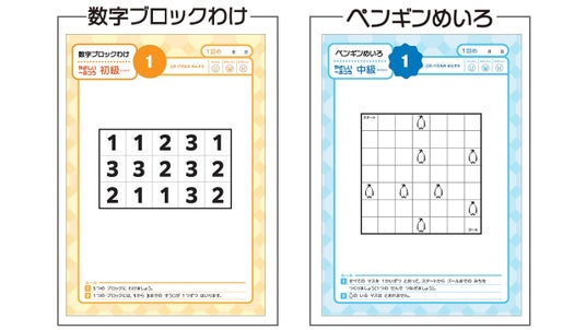 ▲左が「数字ブロックわけ」、右が「ペンギンめいろ」。
