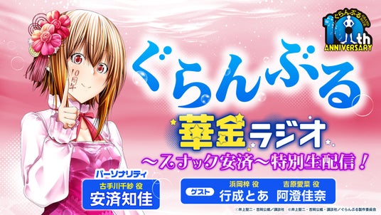 全世界累計1,000万部突破!「good!アフタヌーン」(講談社)にて連載中の原作・井上堅二、漫画・吉岡公威による全裸系青春ダイビングコメディ『ぐらんぶる』。本作の連載10周年を記念して、2024年4月より配信がスタートした飲酒ミッション系ラジオ番組「ぐらんぶる華金ラジオ」初の生配信が9月29日(日)20時~開催決定!