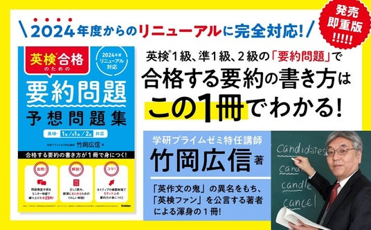 2024年6月に行われた2024年第1回試験から英検はリニューアルされました。問題数の変更など細かな変更などもありますが、とくに話題となっているのが1級、準1級、2級に出題されるようになった「要約問題」です。その「要約問題」にいち早く対応したのが、『英検合格のための要約問題 予想問題集』です。