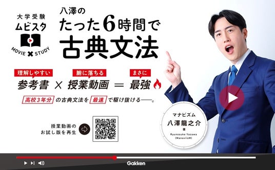超ヒット参考書『大学受験ムビスタ 八澤のたった6時間で古典文法』をはじめとする、シリーズ全4冊の講義動画がまるごと見られます!