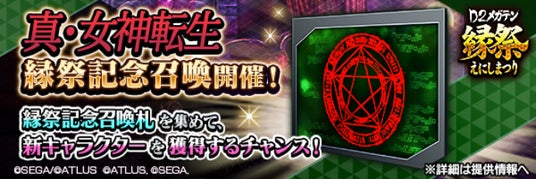 期間中、“真・女神転生 縁祭記念召喚”を行うことができる「縁祭記念召喚札」最大50枚や、「期限付きマッスルドリンコ」最大5個が入手できる“縁祭記念ログインボーナス”を開催します。