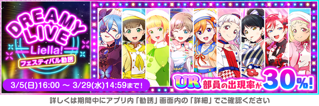μ's/Aqours/Liella!特待生勧誘、パーティコレクション勧誘~μ's/Aqours~が下記日時に終了します。