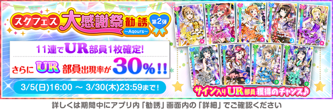 スクフェスを可能な限りお楽しみいただけるよう、サービス終了までの期間に、スクフェス大感謝祭キャンペーンを実施いたします。