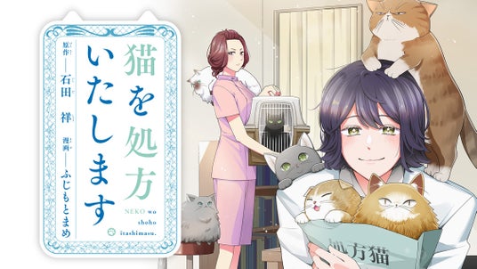 原作小説シリーズ『猫を処方いたします。』(作:石田祥 / 刊:PHP文芸文庫)は累計24万部突破。猫好きさんはもちろん、少しお疲れ気味の現代人に大反響の本作が、『イケメン女子と金髪ショタ』(コミックDAYS)などで人気のふじもとまめによるコミカライズで、本日9月27日より月刊少年マガジン編集部がおくるWeb漫画サイト「月マガ基地」にて連載開始となりました!