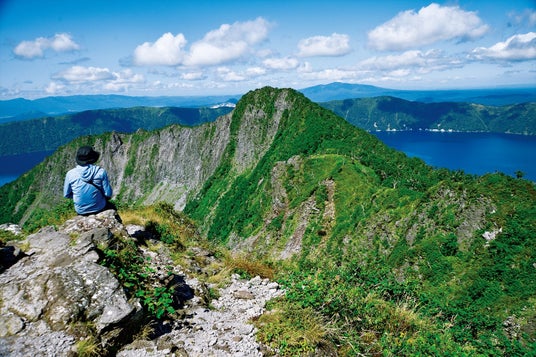 北海道は摩周湖のほとりにそびえるカムイヌプリ。地平線を見はるかすトレイルの先に待つのは、吸い込まれるように青い神秘の湖面と、食い込むように口を開ける深い火口です。北海道の東の果てで感動の体験をぜひ。