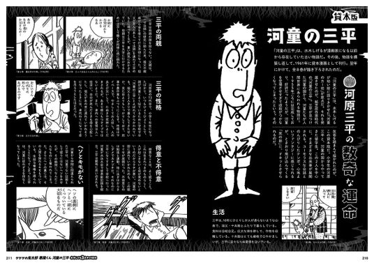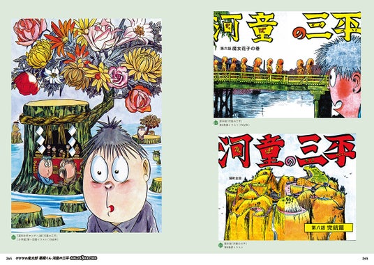 貸本から始まった河童の三平を時系列に沿って掲載誌別に紹介。