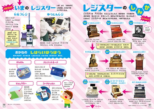 スキャナーやレジのしくみ、スマホでの電子決済のしくみ、お金のはなしなど、未就学児のファーストマネーブックとしても魅力的。