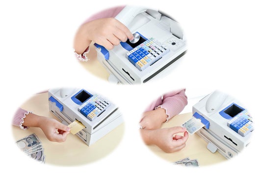 実際のレジのようにお金やカードを入れる投入口もあります。