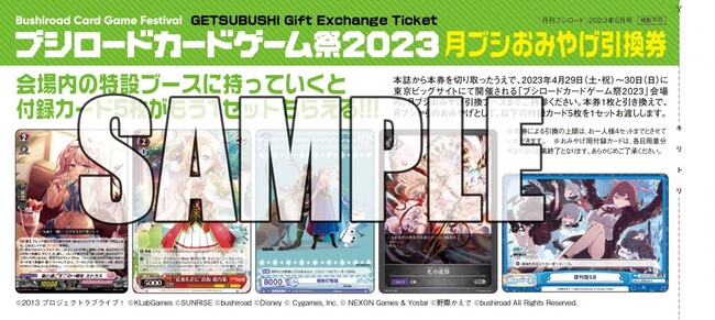 さらに、本誌にはブシロードカードゲーム祭2023会場内の特設ブースに持っていくと、付録カード5枚がもう1セットもらえる【月ブシおみやげ引換券】がついています。