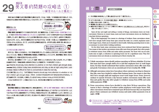 2級、準1級では新しく加わった「英文要約問題」についても、「左ページに解説、右ページに練習問題」という展開でひとつひとつわかりやすく解説します。