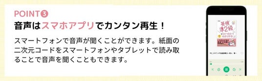 スマートフォンで音声が聞くことができます。PCからのMP3ファイルのダウンロードにも対応していますし、紙面に印刷された二次元コードをスマートフォンやタブレットで読み取ることで音声を聞くこともできます。