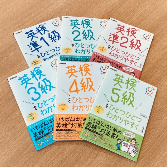 ▲8月29日(木)発売の『英検ひとつひとつわかりやすく。』シリーズ。ラインナップは、準1級、2級、準2級、3級、4級、5級の6冊。