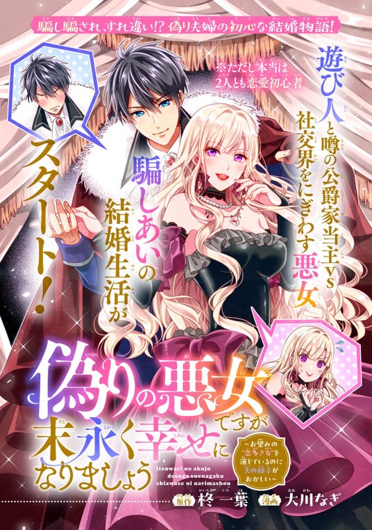 『偽りの悪女ですが末永く幸せになりましょう~お望みの"恋多き女"を演じているのに夫の様子がおかしい~』(原作:柊一葉 / 漫画:大川なぎ )が2024年11月10日よりマンガアプリPalcy(パルシィ)にて連載配信をスタートします。