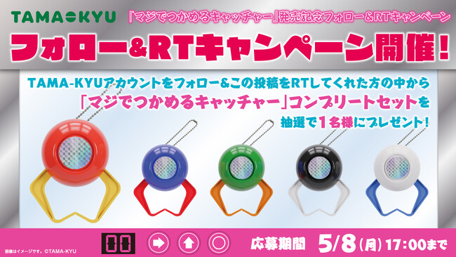 5月1日(月)からTAMA-KYU(タマキュー)公式Twitterにて「マジでつかめるキャッチャー」のコンプリートセットが当たるキャンペーンを行います!