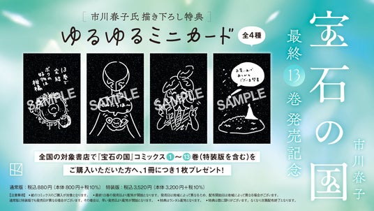 最終巻発売を記念して、「描き下ろしゆるゆるミニカード」(全4種)を配布する書店フェアも開催!発売日以降、対象書店でコミックス1~13巻(特装版含む)をご購入いただいた方へ、1冊につき1枚プレゼントいたします。