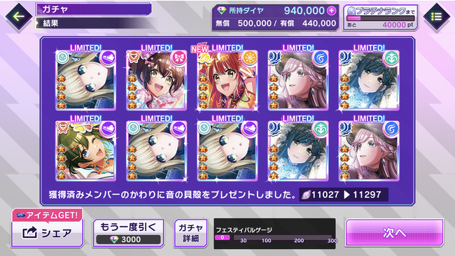 Groovyルーレットを回し切ると、フェスメンバーのみ登場するガチャを回すことができます。