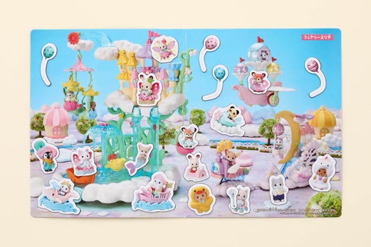 フェアリーエリア、フードエリアの背景シートに、マグネットを貼って、シルバニアファミリーの世界を楽しんでくださいね。