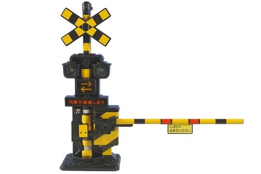 ◆リアルな光と音……警報灯は交互に赤く光り、「カンカンカン」と踏切の警報音が鳴ります。ボタンを押すと電車のリアルな通行音が鳴ります。
