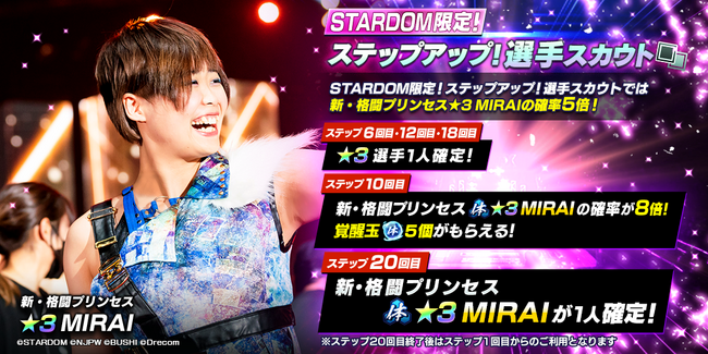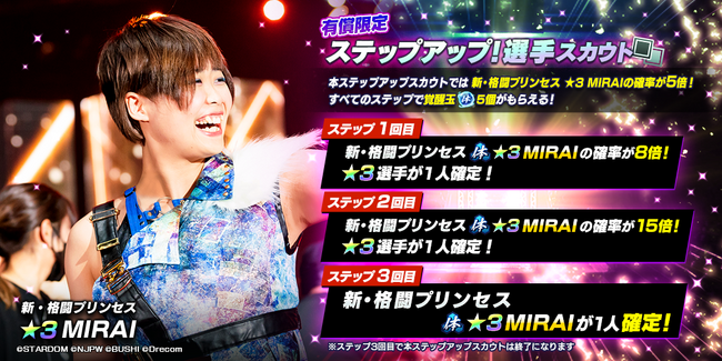 スターダムから、★3MIRAIが初登場!STARDOM限定ステップアップ選手スカウトを開催!