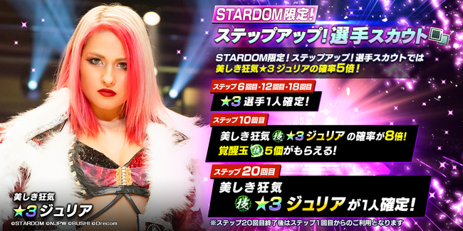 スターダムから、★3ジュリアが初登場!STARDOM限定ステップアップ選手スカウトを開催!