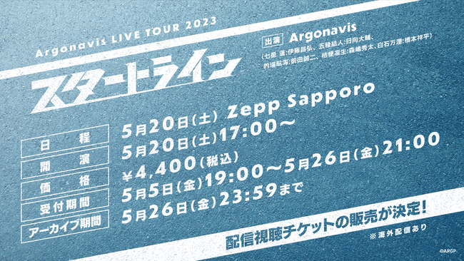 公演名:「Argonavis LIVE TOUR 2023 -スタートライン- 」 Zepp Sapporo公演