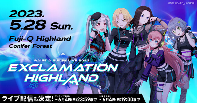 「BUSHIROAD ROCK FESTIVAL 2023」では、ライブ終了翌日の5月28日(日) 18:00から6月3日(土) 23:59にかけてアーカイブ配信が実施され、ライブ当日に収録されたバックステージ映像を特典としてご視聴いただけます。RAISE A SUILEN LIVE 2023「EXCLAMATION HIGHLAND」においても、6月4日(日) 23:59まで配信をご覧いただけます。