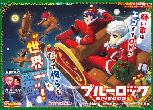 TVアニメ『ブルーロック』第2期の大好評放送を記念して、『ブルーロック-EPISODE 凪-』が巻頭カラーで登場!サンタとトナカイになりきった、クリスマスにピッタリの描き下ろしイラストが可愛い!
