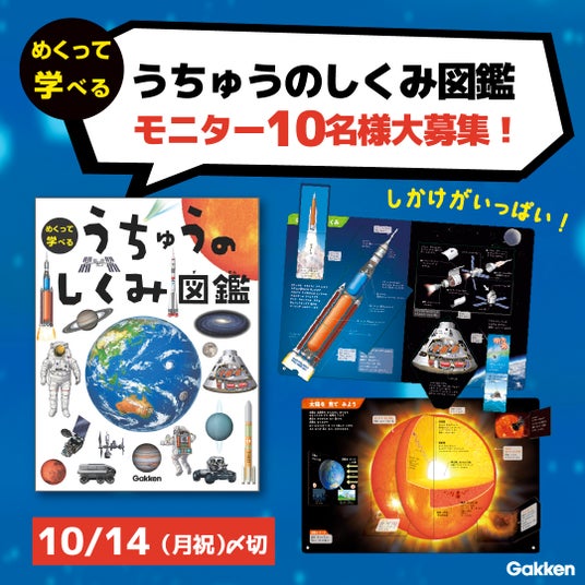 株式会社 学研ホールディングス(東京・品川/代表取締役社長:宮原博昭)のグループ会社、株式会社 Gakken(東京・品川/代表取締役社長:南條達也)は、2024年10月8日(火)~10月14日(月・祝)に『めくって学べる うちゅうのしくみ図鑑』のモニター募集キャンペーンを開催いたします。