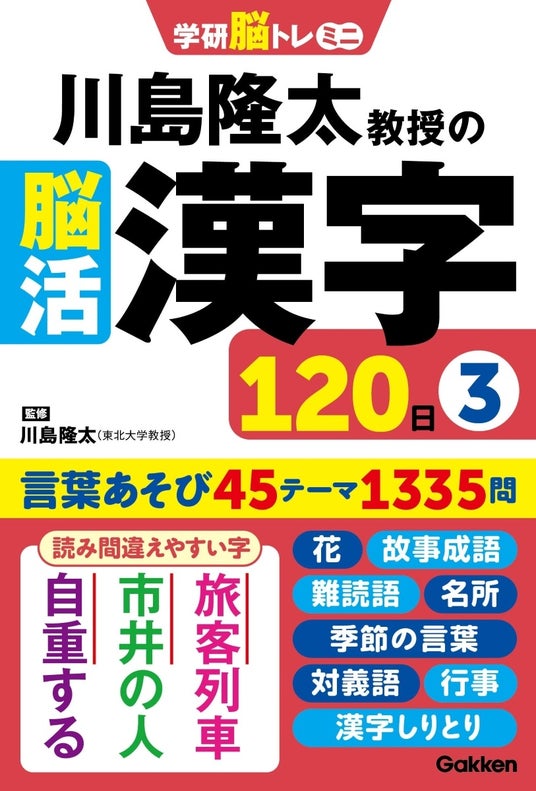 このたび発売する2冊は、脳トレの第一人者【川島隆太教授】が監修する、脳を刺激する「学研脳トレミニ」シリーズの新刊です。「脳活計算120日」「脳活漢字120日」ともに2冊ずつ刊行しており、今回の発売の2冊を加えて全6巻となります。