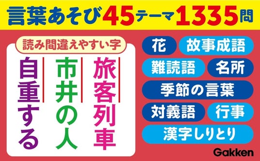 学校で習った基礎漢字やことわざ・四字熟語・故事成語・慣用句のほか、季節・地名・動物に関する常識漢字など、毎日の生活に役立つ問題ばかりです。
