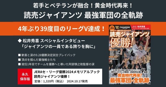 株式会社 学研ホールディングス(東京・品川/代表取締役社長:宮原博昭)のグループ会社、株式会社 Gakken(東京・品川/代表取締役社長:南條達也)は、2024年10月17日(木)に『永久保存版 JERAセ・リーグ優勝2024メモリアルブック 読売ジャイアンツ優勝!』を発売いたします。