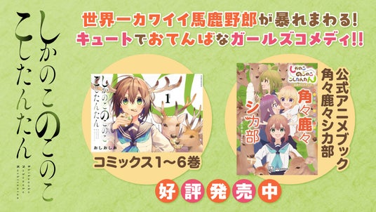 原作コミックス第1~6巻も大好評発売中。また、原作が醸し出す独特な「しかのこ」ワールドが、アニメ化でさらに加速した「しかのこ」公式アニメブックも大好評発売中!こちらもお見逃しなく!
