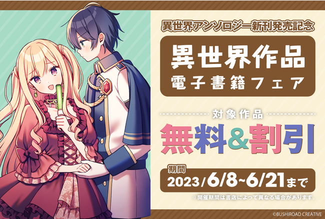 株式会社ブシロード(本社:東京都中野区、代表取締役社長:木谷高明)のグループ会社にあたる株式会社ブシロードクリエイティブ(本社:東京都中野区、代表取締役社長:成田耕祐)は、本日6月8日(木)より、『「異世界推し活! 推し事できて幸せですアンソロジー2.」配信記念 異世界作品電子書籍フェア』が開始することをご案内致します。