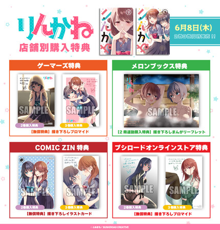 株式会社ブシロード(本社:東京都中野区、代表取締役社長:木谷高明)のグループ会社にあたる株式会社ブシロードクリエイティブ(本社:東京都中野区、代表取締役社長:成田耕祐)は、無料で読めるWEBマンガサイト「コミックブシロードWEB」にて連載していた『りんかね』の第2巻と完結巻となる第3巻が、本日6月8日(木)に同時発売することをご案内致します。