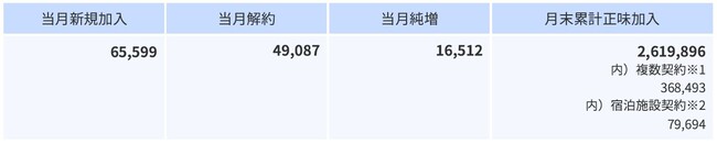 ※2:宿泊施設の客室で視聴するための宿泊施設事業者との契約については、視聴料金を個別に定めており、当該宿泊施設における契約客室の累計正味加入件(室)数は、月末累計正味加入件数に含めております。