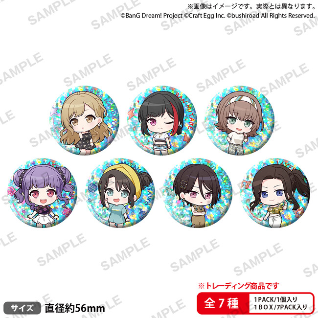 ▼トレーディングホログラム缶バッジ ミニキャラ2023 Summer ver.(全7種) 550円(税込)