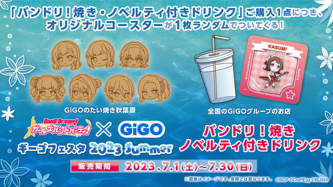 株式会社ブシロード(本社:東京都中野区、代表取締役社長:木谷高明)のグループ会社にあたる株式会社ブシロードクリエイティブ(本社:東京都中野区、代表取締役社長:成田耕祐)は、7月1日(土)より対象のGiGOグループのお店にて『バンドリ! ガールズバンドパーティ×GiGO ギーゴフェスタ 2023 Summer』の期間限定イベントを開催いたします。
