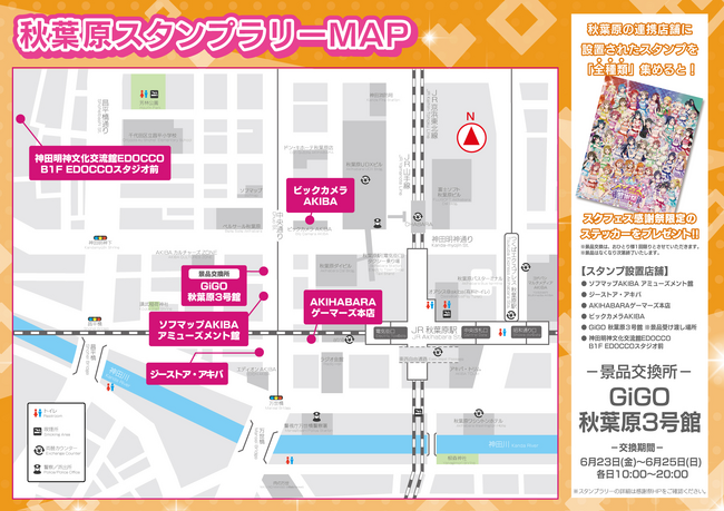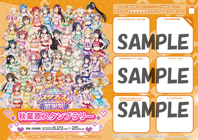 秋葉原のさまざまな場所にスクフェスシリーズ感謝祭2023のスタンプを設置し、すべて集めた方に限定ステッカーをプレゼントします。